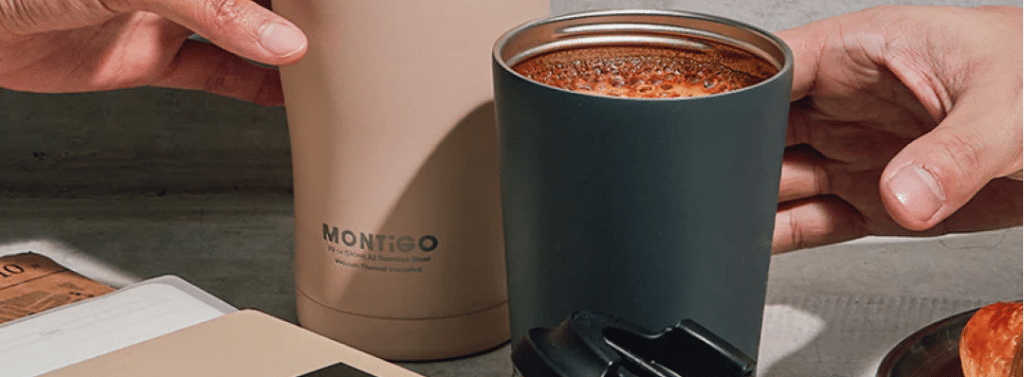 Montigo Tumblers are known for their sleek design and practicality. They’re perfect for both hot and cold beverages and come with a convenient lid that prevents spills.